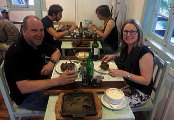 Argentina is the home of beef and Malbec red wine. The definition of a vegetarian meal is anything less than 50% meat, so we felt right at home. Good old Google provided a list of the best steak restaurants in the area, and I think we chose wisely with tender steaks that seemed the size of motorbike batteries, a huge bowl of mash, and a nice red to help the meal on its way.
