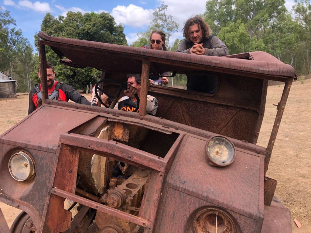 Pushing on we crossed the Normanby River before heading off the road up to Horseshoe Lagoon. This is a pleasant spot but the scenery didn’t appear to be the most important thing – this was our Assessment Sand. After the Bribie Island incident in July I was very much more switched on to riding sand and had come up with a new sand riding motto; You Can Always Recover! This had started in Namibia in 2017, where even with the bike nearly horizontal and seemingly out of control a bit of throttle burst and weight adjustment would cause any observing religious types to claim a miracle – the bike will usually just straighten up and fly right. But seeing Ellyse set up with a camera on the deepest bit resulted in passing the first amendment to the sand riding motto; Unless You Have Performance Anxiety! With all sand riding fundamentals cleared from memory, the throttle burst came too late and into the trees I went, the weight adjustment just saving a timber collision but the loss of speed meant once back on the track the bike bogged down and I stepped off, about 1 metre away from the still rolling GoPro. Crash No.1, I was on the board. That embarrassing event over, we moved onto the Old Laura Station which was complete with historical description boards and bats up in the second floor rooms.