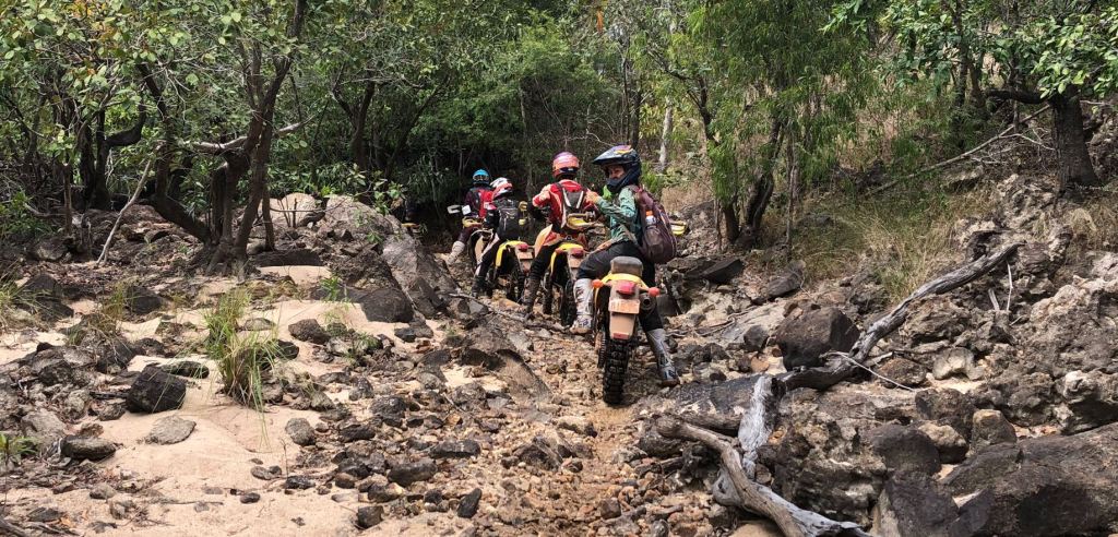 Apart from Shelby, we were all on Suzuki DRZ 400’s, especially fitted out for the conditions with long-range fuel tanks, Barkbusters, and carburettors easy to get river water out of. Each bike bore our name which appeared to be just a nice touch, but one yellow peril looks almost exactly the same as the next so was a good idea unless we wanted to descend into confusion about whose bike was whose before we’d even left. Woody presented a spares price list which was a bit of a wake-up; smashing up the bikes was gunna cost us – fair enough, although admittedly one normally doesn’t deliberately cartwheel a conveyance down a rocky road.