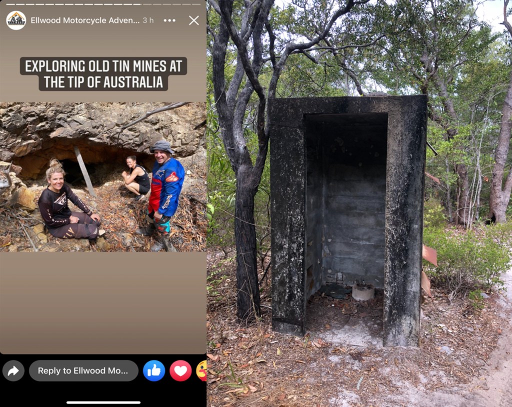 Various options for sight-seeing or more hard-core “off the chain” riding were offered up by Ellwood, unsurprisingly we accepted the option which included the Australian mainland’s most northerly mine. Firstly a look around the tragic Bob Ansett Cape York Resort, now looking like the original Jurassic Park and slowly being overgrown. Then back to the Croc Tent to turn off north to the Punsand Bay resort. Lee was now leading, as a local she had been out to the most northerly mine and thought she could figure out the route. Charging off the road, a very vague track wandered through the dry scrub and suddenly mullock piles alerted us to the fact that we’d arrived at the Holland Reef (Ginger Dicks) Tin Mine. Future Ellwood tours will probably make it mandatory to visit the mine, reaching the Cape is done by thousands but very few get to see Ginger Dicks. A final treat was Cable Beach to see the termination concrete block with the old telegraph cables embedded.