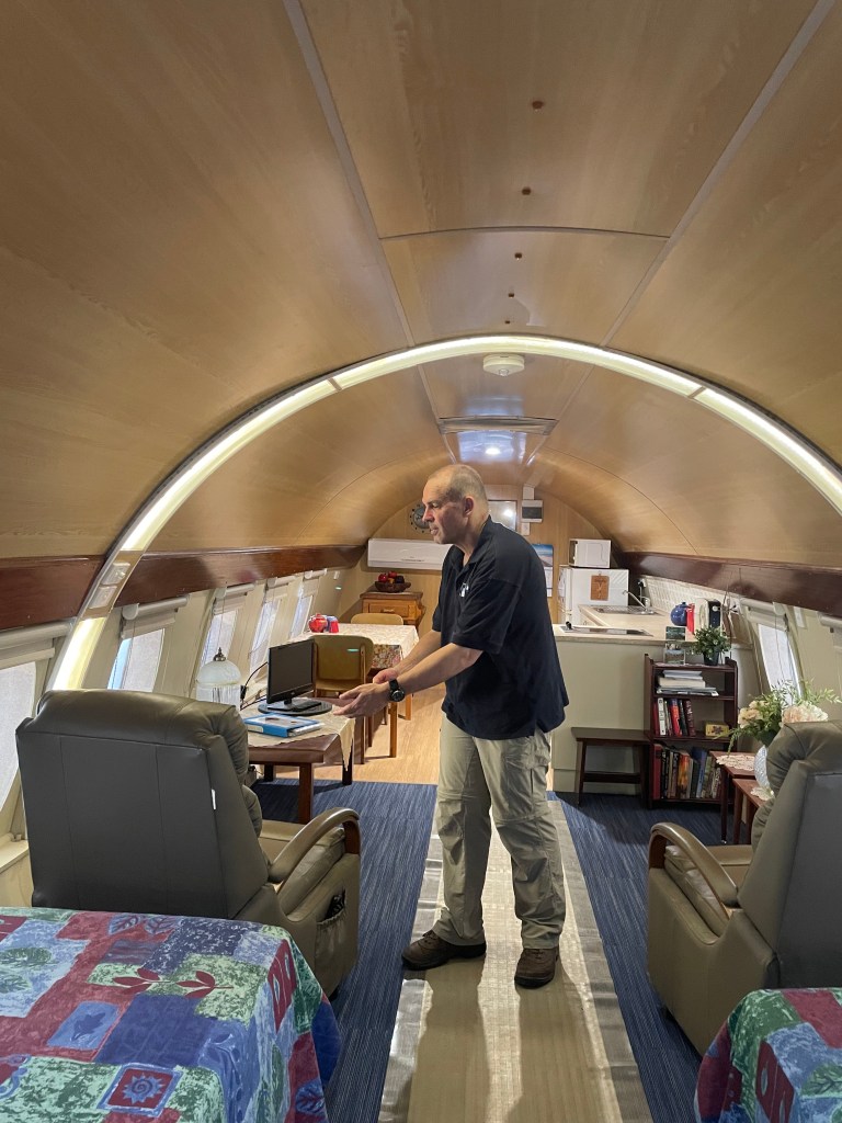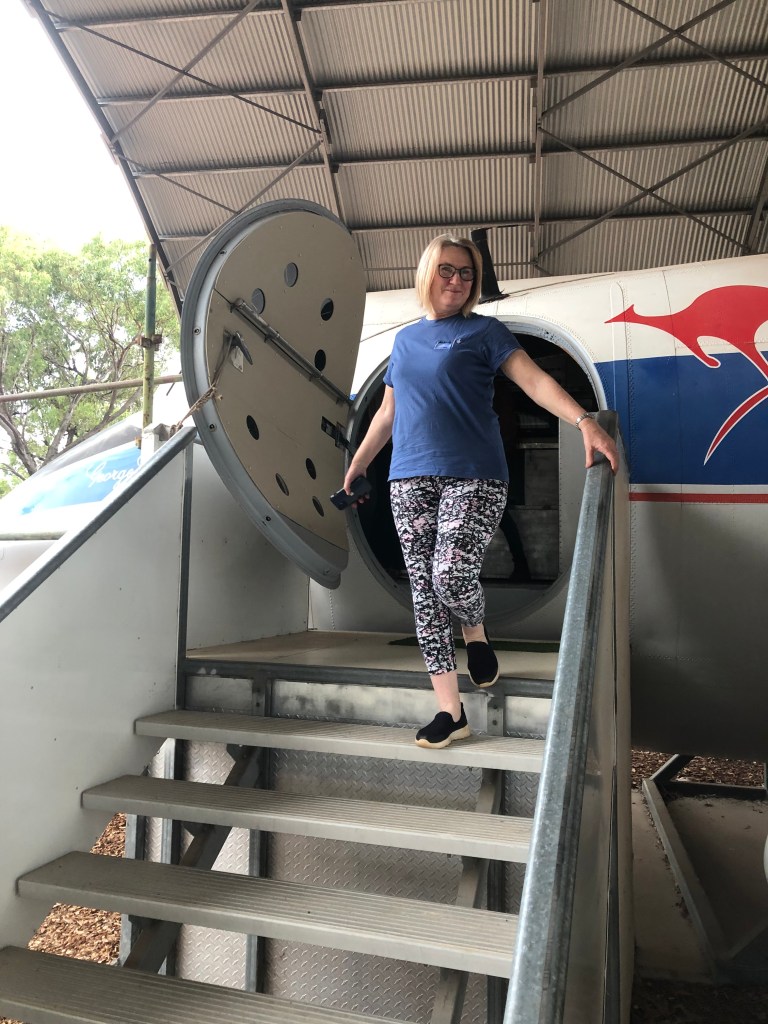 A 3.5km slog around the hill finished, the planned aircraft accommodation was opened up for tours. The aircraft is a Vickers Viscount 756C, the C must mean it is a cruiser, and the pilot’s seat does lean back a bit and looks comfy. It spent 12 years in service from 1957 to 1969, then was sold to the Toowoomba Aviation Museum who never restored it and sold it to a scrap metals dealer who then sold it to someone who owned a timber yard. Possum Park picked it up and have nearly finished restoring it.