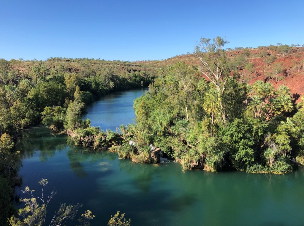 There is a third thing at Lawn Hill; walking. So we did that up to the falls via the hard way, sweaty work that needed a swim or two to recover. The preceding week a motorcyclist had been attacked by a freshwater crocodile at the falls, but no-one seemed to be put off, especially more sweaty motorcyclists. After walking back the hard way again because we’d forgotten to bring the map, there was more swimming during the afternoon interspersed with relaxation under a shady tree. The neighbours were excellent at Lawn Hill, even offering beers in abundance to supplement our small stock of red wine.
