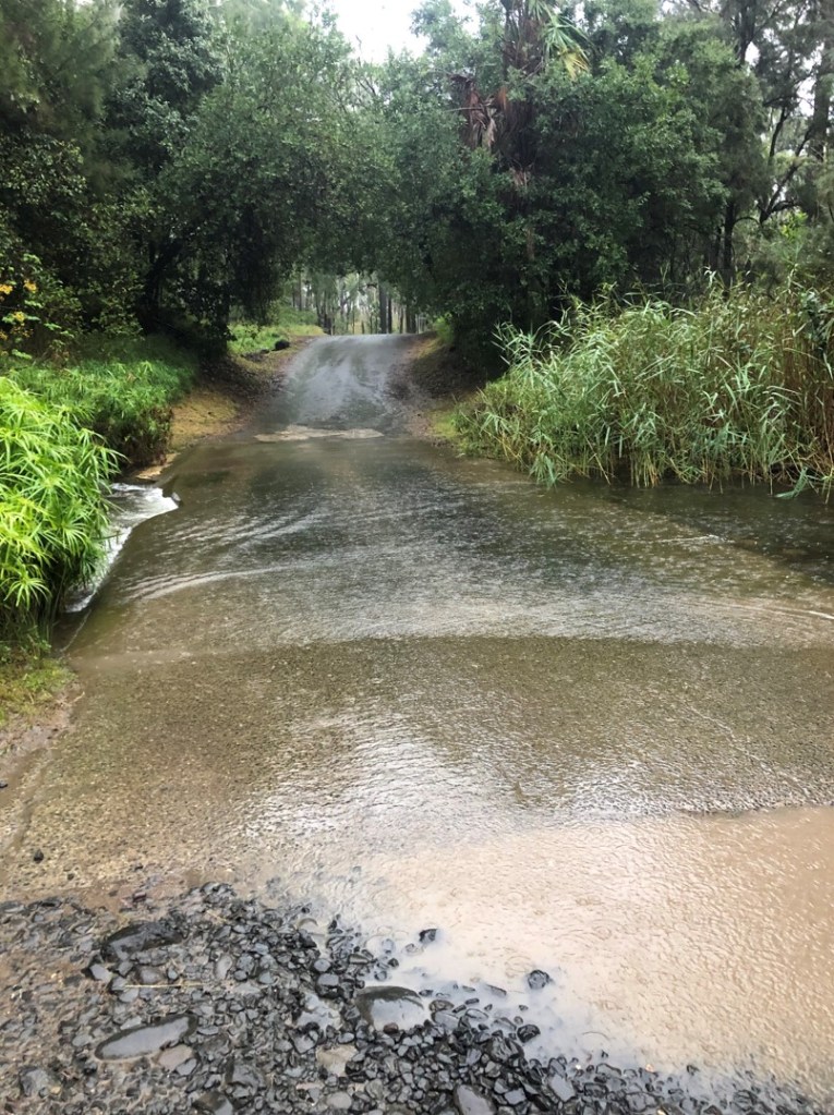 Naturally whilst I was strolling around “sans pant” two 4WDs complete with young-ish ladies came from the other side. I gave the international indication of approximate depth/length, hoping they understood I was indicating depth, and not being a total creep. They came through no troubles giving the thumbs up, likewise hopefully not indicating approximate length.