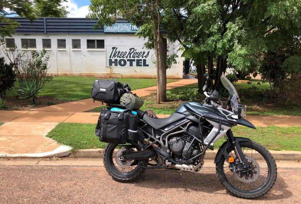 Into Burketown, happily right on lunchtime as it is only 230km between Normanton and Burketown. As it was a Sunday, everything was shut except the pub and the take-away across the road. Lunch consumed, we checked in at the Savannah Lodge. Reviews for the Savannah Lodge are almost suspiciously good, but in fact really don’t do it justice. For example – early check in? No problems, we’ve had the air con on since this morning so it should be nice and cool. Just park right outside the room so you don’t have to cart your stuff far. No problems with security, besides your bikes will be out of sight.