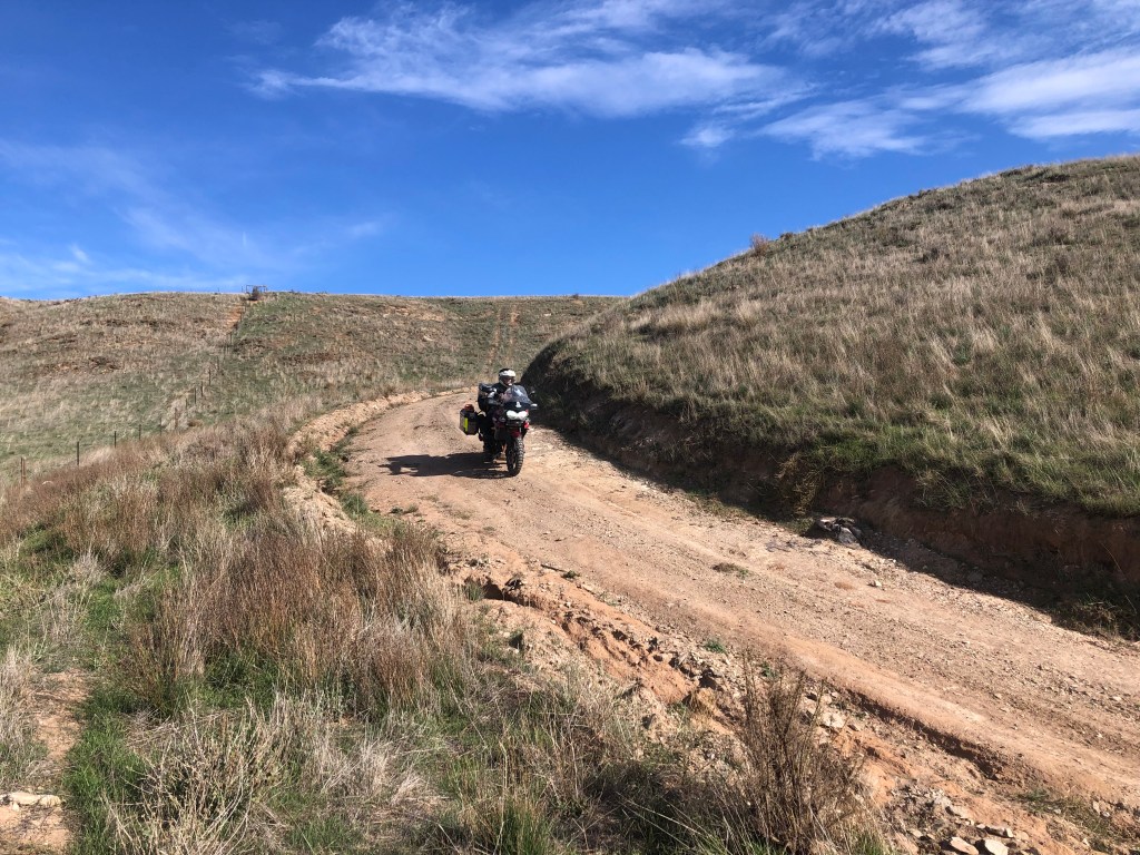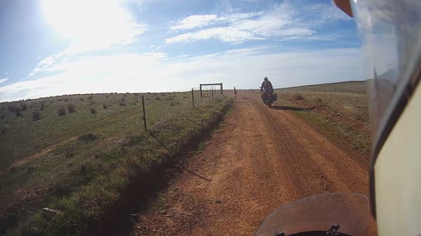Clare was its usual self but very very cold the next morning. In fact we only made it 40 km to Burra before the frostbite settled in, so one of the shortest rides before coffee in the history of rides was the result. Coffee’d and nicely warmed up, we pressed on. The GPS was taking us to Mildura, and decided now was the time to do something completely odd. There was a perfectly good 100 kmh bitumen road available, but perhaps the parallel farm track was 100m shorter even though 30 kmh was a big ask.