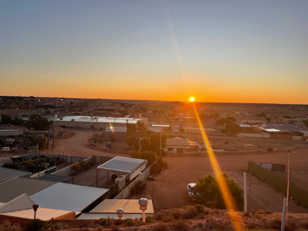 Coober Pedy doesn’t just appear suddenly; little mole hills of white dirt cover the barren landscape for a long way beforehand. Opal mining is the old skool mining in Australia – opals don’t attract large companies, so it is done by small scale operators. The landscape is like a rabbit warren, holes everywhere and lots of signs saying you will fall down one if you trespass. Not renowned for bitter cold, Coober Pedy residents live underground if they can afford to, and we managed to score a motel room bored into the side of a hill. A wander around the somewhat barren and dusty town, we ended up at the Big Winch 360 restaurant for the sunset, enhanced by the dust produced by the mining operations.