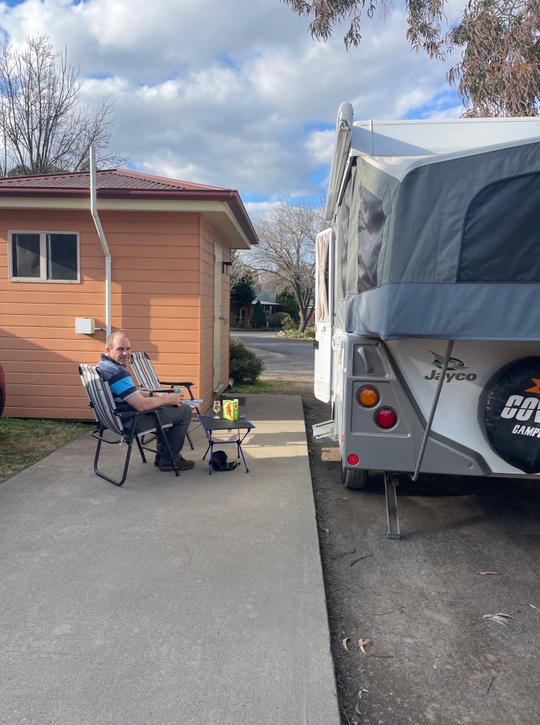 Our second last vanning day saw us heading north to Armidale, and we drove some bad quality roads due to recent wet weather, but we motored onwards and early afternoon found our overnight stay at Armidale Tourist Park.  Another ensuite site awaited us and a very quick erection of the van – practice makes perfect – and we had a seat with a cooling beverage in the afternoon sun to celebrate our last van night.