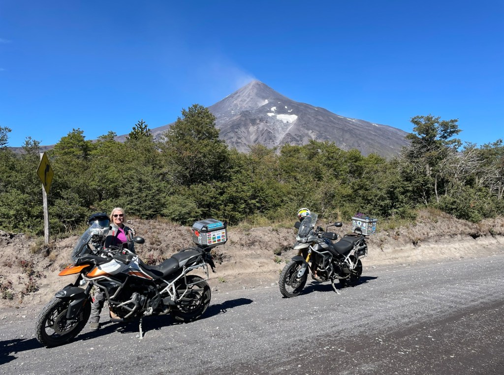 Day 3 was a little better; more highway until lunchtime and then the scenery began around Volcan Villarrica and the lake and town of the same name. A stop for a fine lunch of pollo (chicken) soup and chips, a wander about, and we pushed onto Pucon, with our first deep pebbly gravel challenge in the carpark of the Hotel Casa Solaria. Pucon is part of the Banff Canada and Queenstown NZ trifecta – designed for tourists and populated almost entirely by tourists. There are plenty of places to buy grossly overpriced outdoor clothing, artisanal crafts and souvenirs, but try finding electrical tape and normal items on the lower levels of Maslow’s hierarchy (besides craft beers) and you’re in trouble.