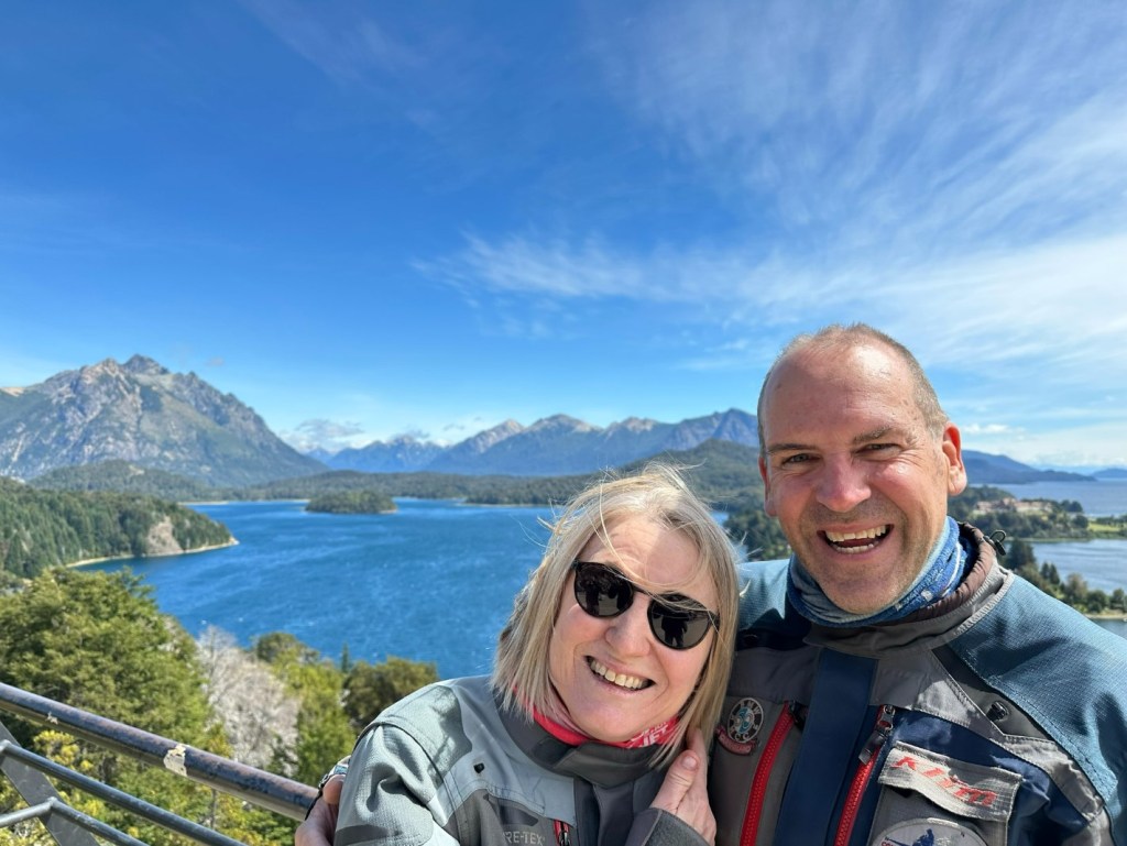 10 kilometres of very rough dirt road later we were onto the bitumen and through Junin de los Andes heading for lunch into San Martin de los Andes, both named in case anyone somehow forgot what that imposing mountain range to the west was called. Unsurprisingly empanadas were on the menu, so were consumed by most. We were now glued to the famous 5,000 km long Ruta 40, which starts near the top of Argentina and finishes near the bottom, so continued down to Bariloche cruising at speeds in line with the $0.60/litre Argentinian fuel prices. The traffic became a bit horrendous approaching the hotel, it appeared to the unhumble as though we were being escorted by a joyous marching crowd but it turned out to be a slowly walking protest and nothing to do with us.