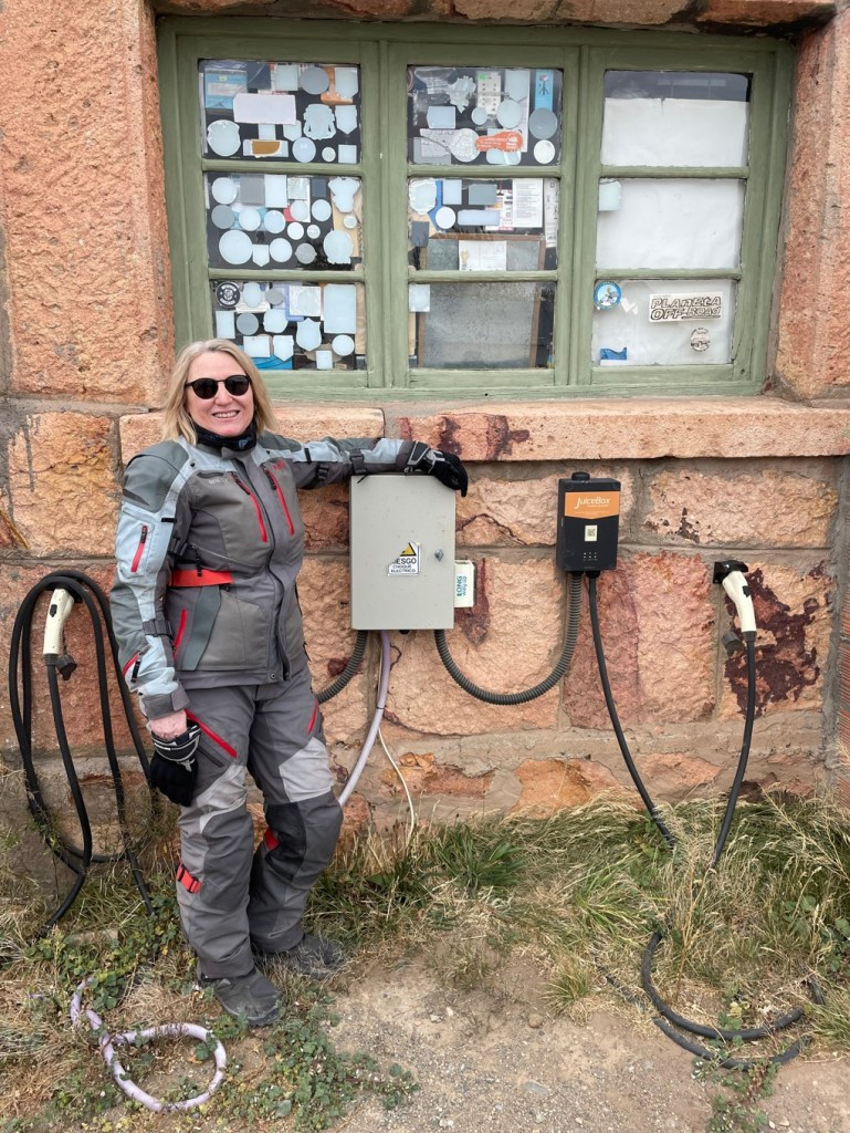 The remains of Ewan and Charlie’s Long Way Up EV charging station – unused since then