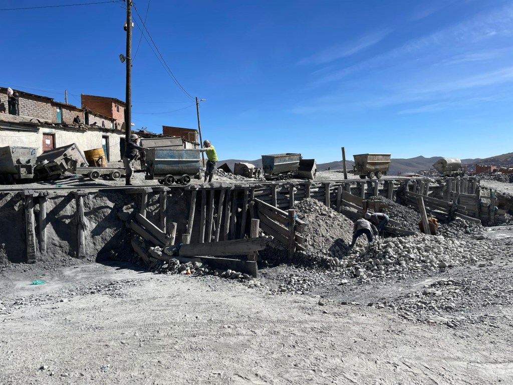 Up to the mine, the harsh reality is immediately apparent with the ore loaded into carts and pushed out along the drives, and the individual miner’s efforts dumped into their own piles. The mineralised rock is then separated from the waste fines and sold to concentrate buyers. Compared with modern mines with hundreds or thousands of tonnes of concentrate produced daily, it is easy to see how Bolivian individualistic and co-operative custom limits the miners to a very tough life.