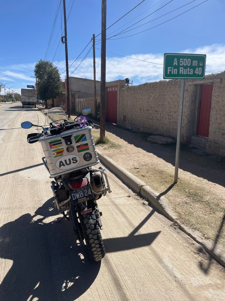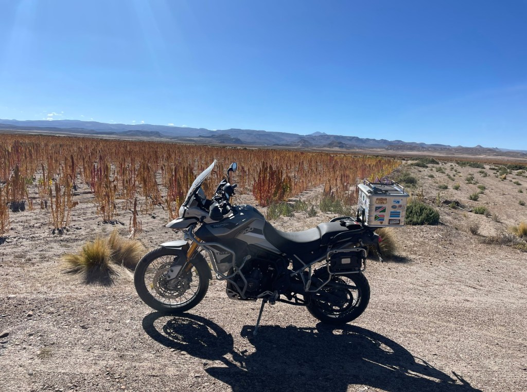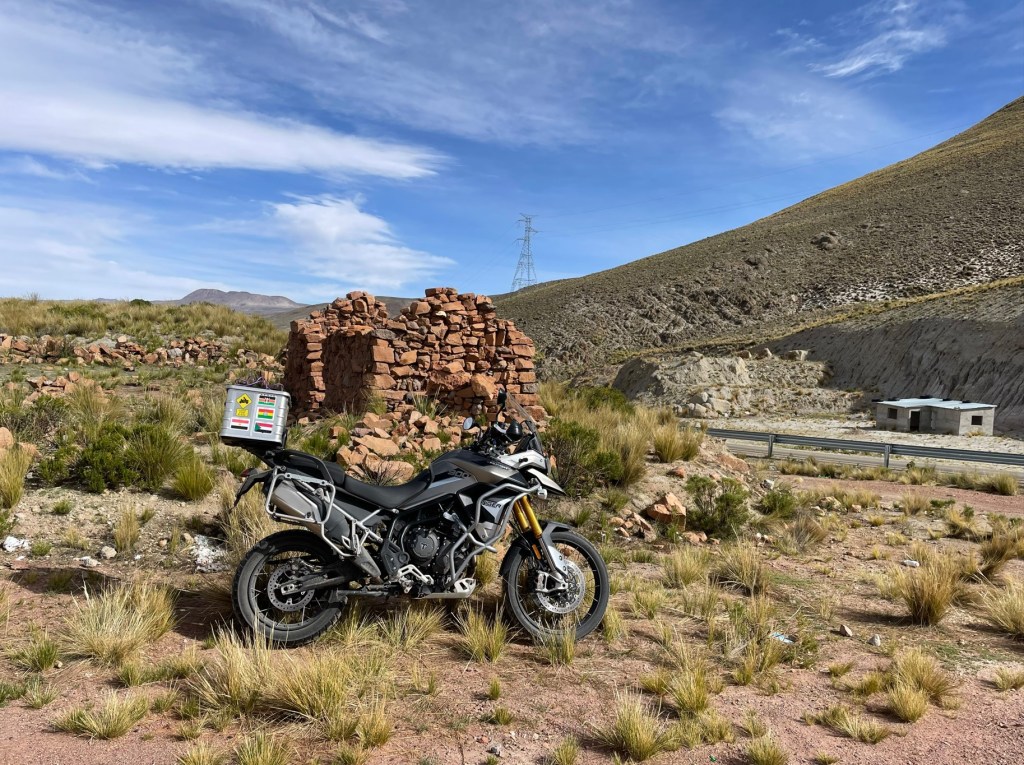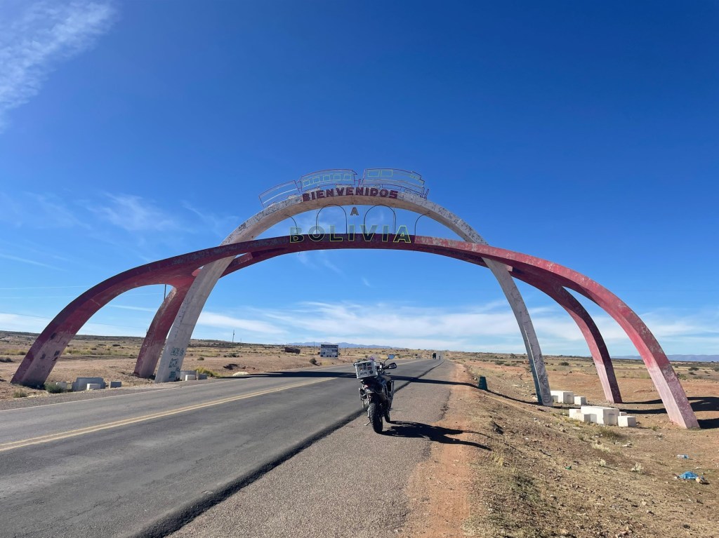 Arriving at the border crossing of La Quiaca, we rode the very northern end of the famous Ruta 40, last seen at the very southern end in Patagonia at Rio Gallegos. We tried to use up our last Argentinian pesos on fuel without much success, so spent it all on water and snacks instead before hitting the border facilities, parking in a field of boulders just to make the 3,500 m altitude even more taxing. Out of Argentina was easy, we’d already done it countless times so after inquiring after the health of all the immigration official’s spouses and children who we were on first names terms with, it was onto the Bolivian side.