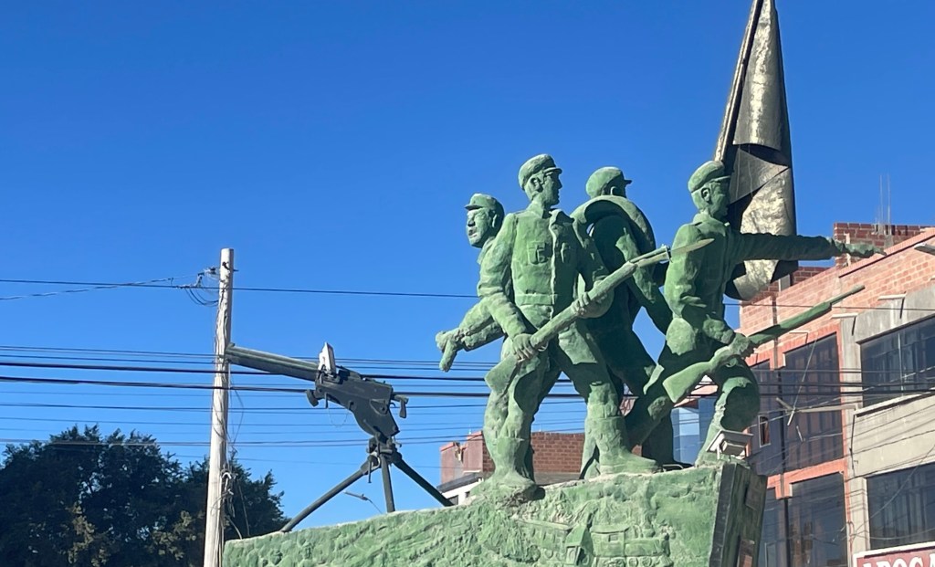Into El Alto was exciting as I was Tail-End Charlie, and Paul’s bike was mysteriously cutting out in the middle of every major intersection. Fortunately we made it back to Anna-Maria’s place unscathed by the torrents of tooting and, if my behaviour toward scroat-bag d’heads blocking traffic is universal, verbal abuse. Steeply back down into the hotel in La Paz in the bus, all we could manage was a light dinner and preparation for the leaving on the morrow.