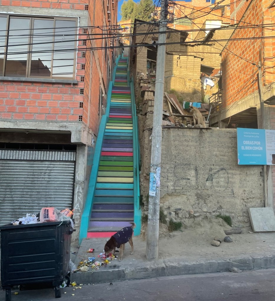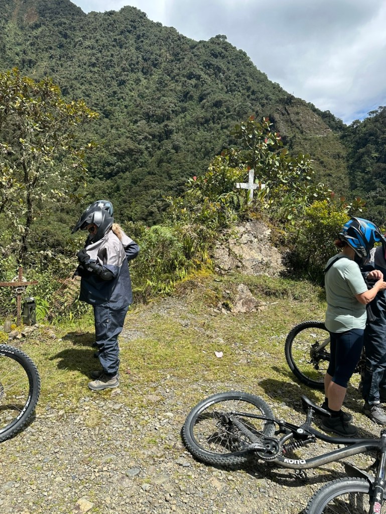The city tour cut short by a teacher’s protest in the main square, we were back to the hotel for a well-deserved lie-down to further acclimatise before a few quiet acclimatising drinks and dinner. Day 58 Death Road motorcycle tour has been described ad nauseum in our previous post; a tale of humankind’s capacity to not just survive against incredible odds, but to rise up and conquer. You can’t read it now, I’ve over-hyped it. I can’t describe the bicycle tour because I wasn’t on it, but Cindy was and she loved it except for waiting 3 hours at the end while they washed the bikes, finally returning in a touchy mood with the rest of the crew to La Paz at 8:30pm.