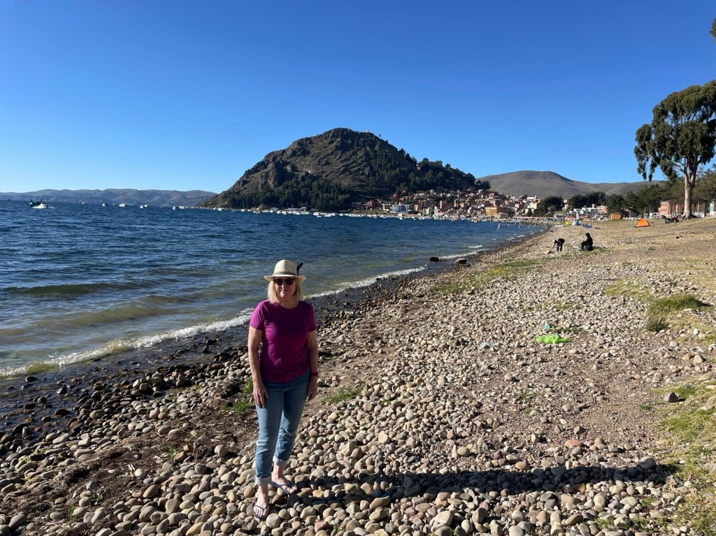 Off along the very picturesque shores of Titicaca, the altitude only got closer to 4000 m as we went over the surrounding hills. Into Copacabana, then out again, then back in, neither our Maps.me app nor the GPS was being particularly useful for navigation, but eventually we found the magic portal into the hotel which looked like no-one had ever been through it. Now it was time for me to collapse onto the bed and sleep for the entire day feeling decidedly ordinary, but a full recovery was made after a very light dinner of salad and chips.