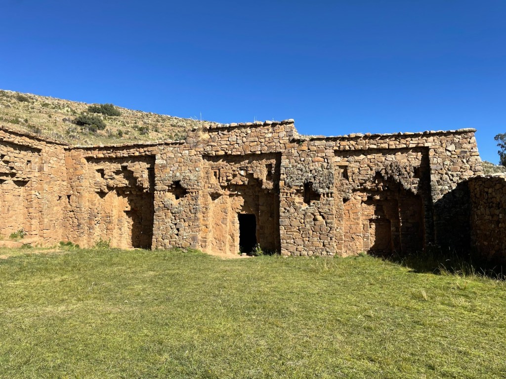 Day 60 was retirement age for many of the crowd due to the altitude which seems impossible looking across a lake that appears like the ocean which is at 0 m. The day’s excursion was out to the Isla de la Luna and the Isla del Sol, luckily not too far away given the top cruising speed of the boat seemed to be up there with a dead cow’s in a millpond. Eventually arriving at Luna, we were the only ones there and had taken the locals by complete surprise, using the baños for free and getting up into the Incan ruins before they could get the souvenir stall set up. The Isla de la Luna was the exclusive and remote island for virgin girls who were children of the high ranking and elite families throughout the empire, with the objective to train them and set them up for duty. Which was to be sacrificed on Isla del Sol, a great career option. A wander about the ruins and a comprehensive explanation of what went on by JC, some light souvenir purchase by some, and we were back on Drifting Slowly II for a cruise back to the Isla del Sol.