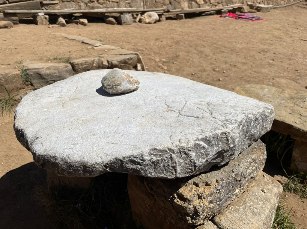 The Isla del Sol was much the same as the Isla de la Luna, but as it was the birthplace of the first two Incas it was the place for the Inca and for boys only. Even the emperor used to visit Sol and as was apparently fit and proper for the boys it was only a short boat trip across from the lake shore with its Incan craft beer taverns and night clubs (reference: makestuffup.com). We had a professional guide for Sol, who explained in detail the significance of the layout and design, including a room lined with gold sheet which aligned with the sun rise on some auspicious day. Naturally the Spaniards found a much better use for all the gold, but it was an impressive place just the same. Most impressive for the easily amused was a flat rock, which when hit with another rock sounded just like hitting metal, and kept us busy for ages.