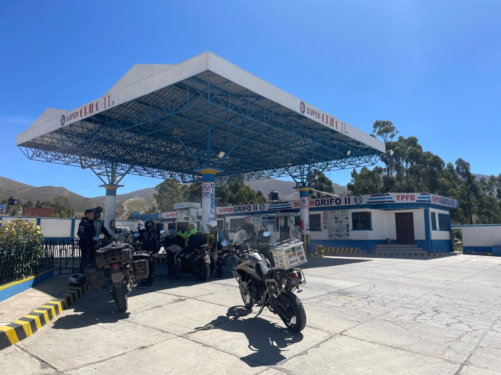 Day 52 was unpacking the carpark, luckily someone with advanced Jenga skills was on hand to avoid the entire thing collapsing into a tangle. Off we went, with the plan to re-fuel somewhere on route. This raised a significant problem; although Bolivia welcomes tourists travelling in vehicles with internal combustion engines, it doesn’t generally allow service stations to sell to tourists the liquid that allows combustion to happen. Bizarrely you can pull up at a servo, and just have to ask whether they will sell you fuel. Generally the answer is no, which is not ideal for maintaining calm when one’s remaining tank volume is unlikely to get to the next town, and locals are happily cruisin’ up to the bowser in a solid stream. Bribery sometimes works, but they are actually obeying the rules not selling us fuel so only if they are Samaritans will you get it.