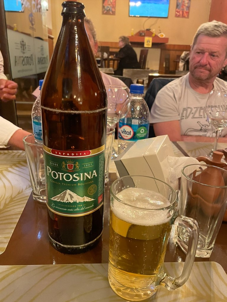 Down the hill into Uyuni, well sort of, it is at an altitude of 3600 m so no rest for the sick and those forced to transport luggage up flights of stairs. An excellent establishment, the Tonito hotel did great pizzas and had craft beer on tap, so no need to find anywhere in town. A brief wander up into town to get a few more BOB and it was all over for another day.