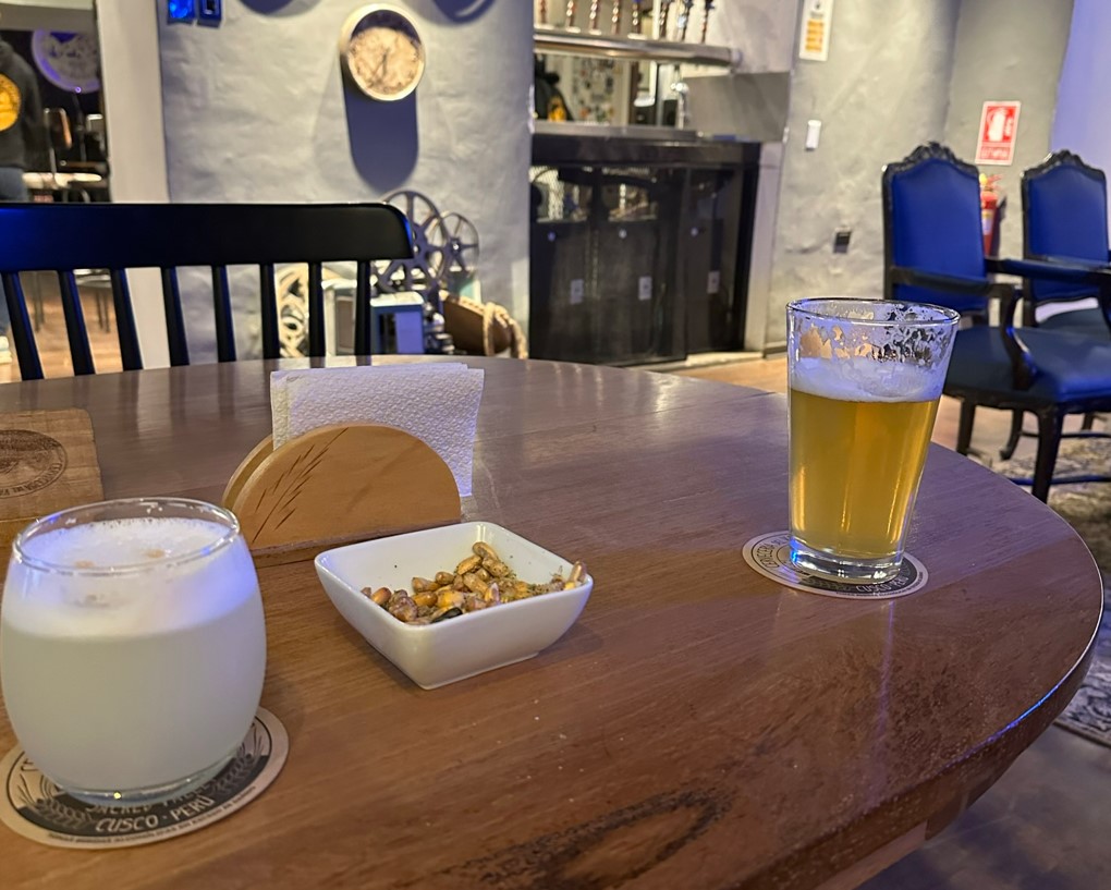 Back into Cusco and of course a trip back to the craft brewery was planned, but first a Pisco Sour cocktail making class at the hotel bar. We passed with flying colours, the proof in the taste of the finished product! Fortunately for Duncan the teacher was distracted when he was putting in the Pisco measure of 3 shots, the last one may have overflowed about 2 additional shots worth into the blender.