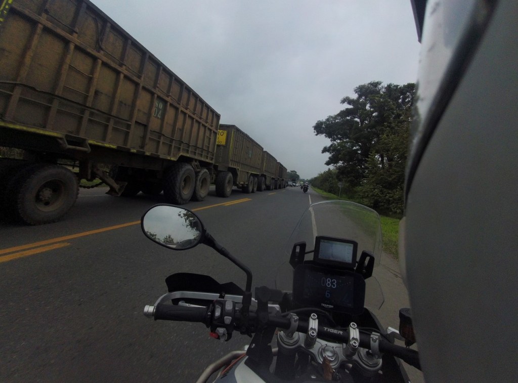 Day 91 (wondering while writing this if anyone noticed the previous day had been Day 92 in Ecuadorable, luckily no-one is that switched on unless they have some sort of psycho-obsessive Norman Bates condition that could easily explode into violence) was to Popayan. The roads in Colombia are famously twisty, and today was a joy until we hit the trucks. The stopped line of vehicles just went on forever, and occasionally one would decide they could easily make three lanes out of the standard two to speed things up when the line started moving. This would create some manoeuvring, at times needing trucks to back up or move sideways via pointing and waving to allow us through. And then suddenly we were through a checkpoint, and on our own. Alarm bells started going off, hopefully it was simply a landslide with only a 1.5 m wide track of unblemished tarmac around a huge boulder, yes surely that was why trucks and cars had been stopped by authorities. Then we came upon another checkpoint, whose attendant had enough English and hand signal skill to say “slow, it is slippery”. Mate, we’ve ridden from half-way down to the bottom, and now nearly all the way to the top of South America without once dropping the bike. Toby Price hasn’t managed that. We’ll be fine.
