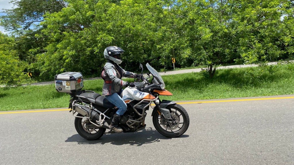 The trip into the planned Medellin was a bit confusing, the road we were on would bring us through the city from the north, so JC decided to make a change to come in from the east. Some U-turns and random deviations later, we made it to the hotel. Cindy claimed that her rear brake wasn’t working, so I decided to take the Tigressa for a lap of the hotel car park. Down the hill towards the street, and then a half decision to take the footpath half changed to the main street, and the footpeg hit the edge of the garden. Bike fell over and left me sitting on the lawn with my boot trapped under the bike and refusing to come out. Shouting at team members didn’t work, they were oblivious. Passers-by saw my predicament and rushed to help, then started conversations when I told them we had ridden much of South America although right now it didn’t look like I had the skills to ride around the block. Eventually someone decided to help lift the bike off, they were just heading out on a big tour south to Santiago themselves so felt that they had to do something. Mind you, Scott had a more exciting day as he and Gina had headed off earlier than the group, and he’d decided to take a highly technical dirt track to get into Medellin. Gina smacking him on the back of the helmet only made it more technical.