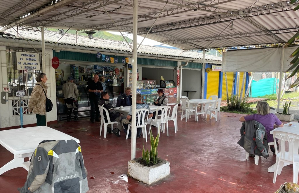 And then after finally getting going we were into the tunnels. The Tunel de La Linea is 8.5 km long and there are lots more tunnels, dual lane and simply epic riding as long as one remembers to raise the tinted visor to see. Then into the bedlam that is Bogota, in particular the main road coming in from the west that even defeated scooters in trying to filter up between the barely moving cars and vans and trucks. Arriving in the usual sweaty mess, it was once more waiting a bit for our room to become available, then up to relax in the bioxury and prepare for the evening’s norm of finding somewhere for a drink before a group dinner with the usual hilarity.