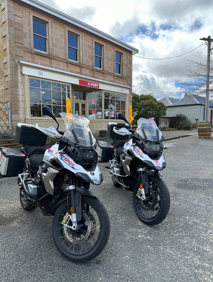 A quick inspection of the bikes to satisfy our Alaska Motoquest “you dented the rim so that’s US$1500, oh you sent us a photo showing it was already dented, that’s OK then” psychosis, and we were off. A clear positive about leaving TMTR is that you are literally riding Tasmania before you leave the driveway – pure riding freedom and nothing constraining the experience. Except for Phil’s gate. Firstly back through Sorell, then down the main street of Richmond, then to Brighton. Phil dirt road No.1 was to Hollow Tree, but the GPS refused the jump, and demanded the long way. We weren’t having that, so ended up doing lots of dirt to do the small section of recommended dirt, which was fine because most Tassie dirt is good dirt. Finally conjoined with the GPS, we rolled into Bothwell. Lunch awaited at the combo café and post office, a toasted ham and cheese sandwich each. One sandwich would have fed both of us, for days, but a big effort was made to finish to show the post officers we could do anything.