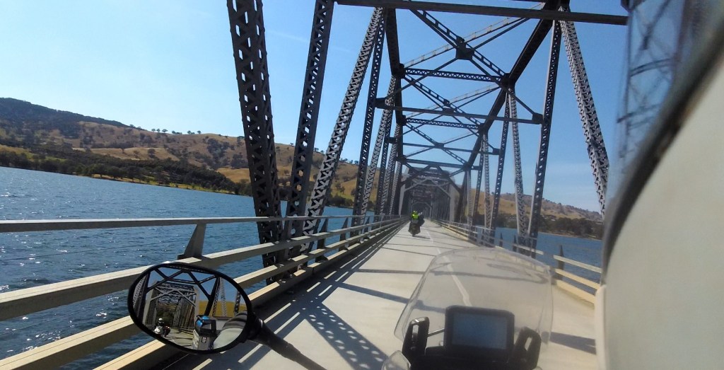 The reunion weekend started with a mere 350km continuation east on the north side of the Murray. Way too late into Deni for the Ute Muster but too early for lunch, it was still within the allowable time period for a caffeine at a Scottish Restaurant before continuing on to the Albury Cindy Muster. Rolling in just after 2pm, the spousal reunion was held during a trip to Kmart to find some less worn-in pajamas and the day was completed with quite a few beers and catch-ups with Compass mates. It was strange after nearly 2 weeks to be back riding with Cindy and others after so much “ride your own ride”, but the social uplift going from talking only to oneself to others who probably wished you weren’t talking was important.