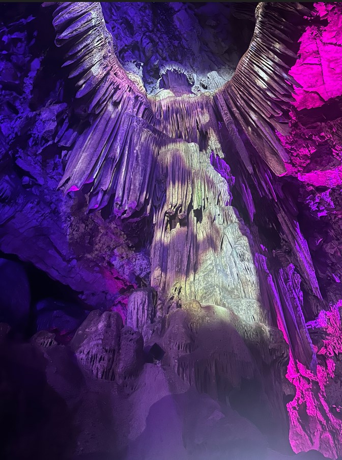 Anyway, up the Rock. First to a spot celebrating the importance of Gibraltar for the ancient and the modern world, it was a pillar of Hercules, the other being across the strait at Jebel Musa. Going back a long time Gibraltar was joined to Africa, then it separated, then the Atlantic flooded in to make the Mediterranean, so the Hercules story isn’t that far from reality. Next stop was the caves, Gibraltar is limestone so there are a few ancient natural ones besides the 54km of tunnels in a Rock that is only 3km long and 1km wide. The caves were well done, with a light show explaining the geology of the area and plenty of seats for the Old Speckled victims.
