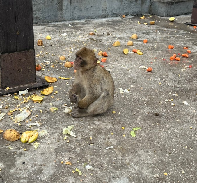Back down, we were off to the macaque feeding area. The history of the macaques is interesting, our guide firmly believes they were not native to that side of the strait, and had been brought over from Morocco as pets by the Moors which makes sense. They live up on the Rock and are very tightly managed and monitored. Feeding and providing water up on the Rock stops the likelihood of attraction into the town which would not end well.