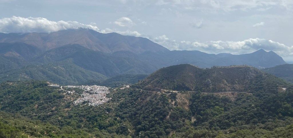Getting back into Spain took even less time than getting out, we even had our own motorcycle and bicycle lane to bypass the large queue of cars. Through La Linea, and north through the rural countryside it was lovely cruising on a beautiful day. We stopped for an excellent lunch in a suburb of Los Angeles, or LA as it is usually known, before heading up into the hills.