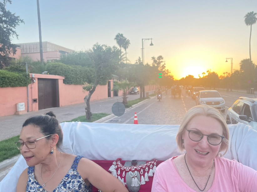 Loaded up with Saffron liver stuff to help him function normally in social situations, we wandered through the markets and tried to avoid getting run over by all the carts. It was now too hot to do anything but get into an air-conditioned restaurant for yet another awesome tajine lunch. Back to the hotel, it was a rare opportunity for relaxation before dressing up for a team dinner, right back in town about 100m from where we’d had lunch. No walking though, Uber 2 horsepower carriages had been organised. For people who had just been riding camels, this was the height of comfort and luxury.