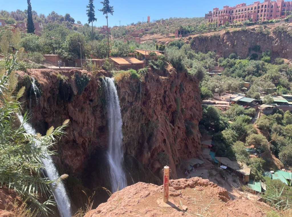 Our first destination was the Ouzoud Waterfalls. This was a bit odd; a guide had been organised but he didn’t say anything and it was like being guided to a Statue of Liberty viewing platform without getting any talk; you are showing us something bleeding obvious, what value are you adding? So we all strolled off, and checked out the falls on our own, while the guide tried hard to muster us back into a flock. These were growing falls, the water is calcium and magnesium rich, so they grow as these precipitate out.