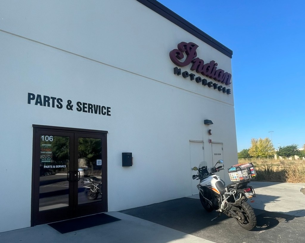 A problem; it was Sunday. Motorcycle dealers in the USA aren’t open on a Sunday, that’s fine and in keeping with the Assyrian restrictions on chariot riding on the 7th day, but somehow restrictions on servicing chariots in the US has extended to Mondays. Not much to do on Day 83 Monday but ride the kilometre over to the Triumph Boise dealership and hope that looking in the windows would prompt security to call the dealer principal to tell him he needed to sort some weirdos out. And go to the movies, it was a very convenient location. The dealership opened at the gentlemanly time of 0930 on Tuesday Day 84. We were there at 0900, who knows if there is a first-in-best-dressed policy, but if there was we were going to be best dressed. As per all motorcycle dealers, the workday starts well before opening as they have to roll all the bikes out. So we parked Cindy’s bike near the service door, and wandered in. Hunter greeted us, and a more positive human being is unlikely to exist elsewhere on this planet. Yeah you have absolutely no worries was his credo, and it was a transferable credo. Have a water and wait for Josh the service manager. Josh comes in, okay we’ll have a look, likely the pivot plate, if so we’ll order one.