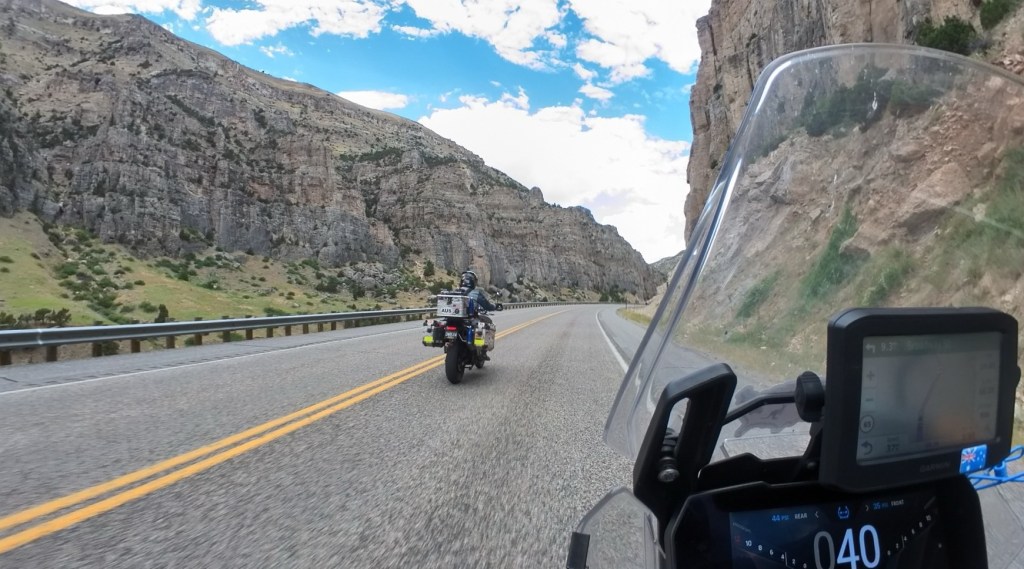 North with a smidgin of west, the countryside flattened and dried out, we were hovering on the eastern side of the Rocky Mountains. A very impressive rock formation appeared, and there is no riding past those. It was Split Rock, a geological feature that leads to a break in the Rocky Mountains and so was used by the early overlanders to get to the west coast along the Oregon trail. There was a lot of slog on the Oregon trail, it is tough country with lots of miles between anything that looks good.