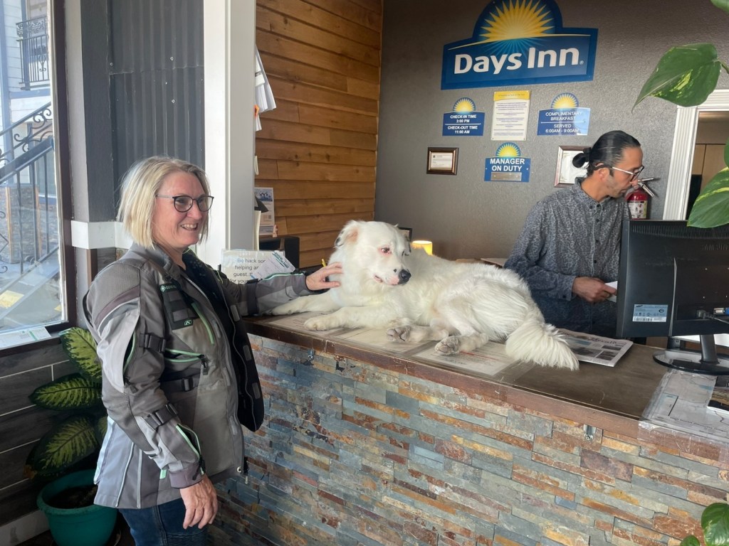 Checked in, we parked the bikes, taking care not to park nor step in a huge pooh, species origin unknown but narrowed down to human or canine. Luckily there was a good bar and grill next door so we decided Burns wasn’t a total disaster. But back inside the room, the lino floor was so filthy that my feet were black, not noticed until the next Day 87 morning when I got in the shower. The sheets at the bottom of the bed looked like an 18th century coal miner had got in with us and wiggled around after a big shift at the face. The basin drain had broken so until the rubbish bin was jammed underneath it flooded the bathroom. The general outline of the review for the Burns Days Inn was already well developed.