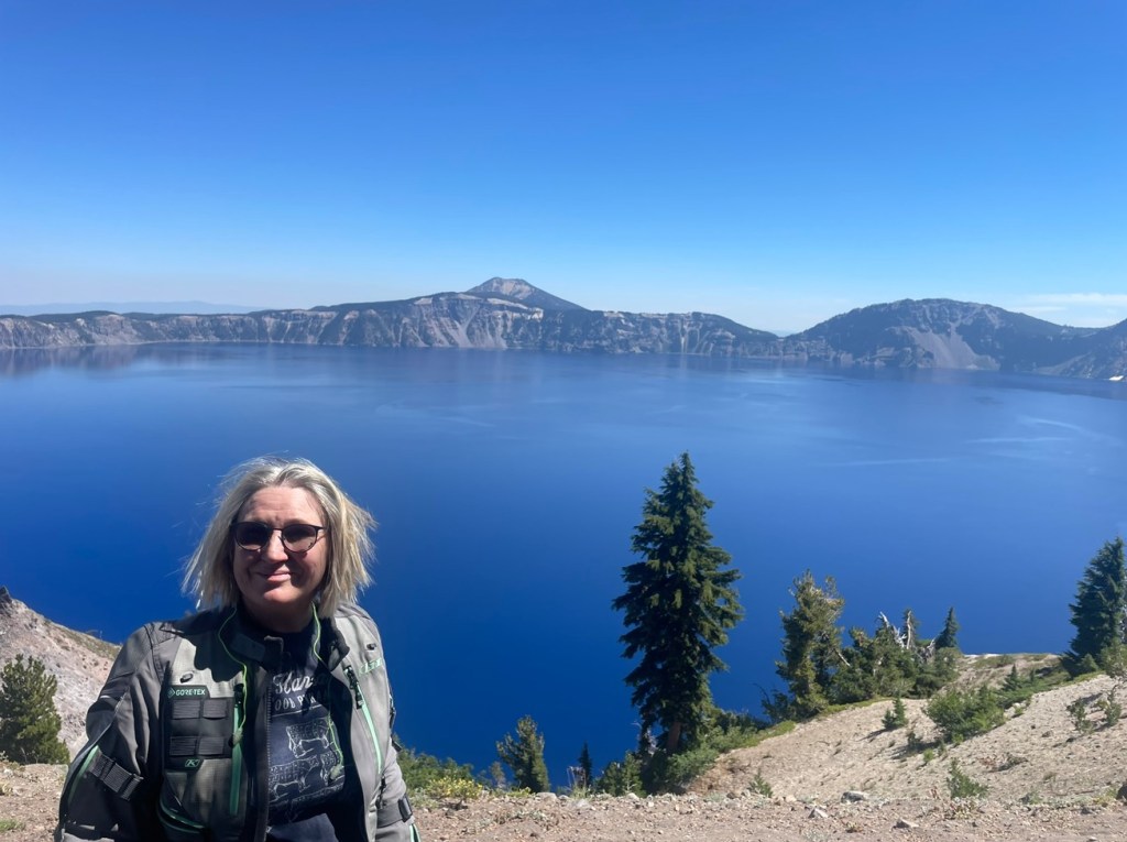 One of the more spectacular scenes today, and totally unexpected by me as I hadn’t paid attention to anything as usual. Into Crater Lake National Park – sounds OK, obviously a lake sitting in a crater. The ride in was amazing, up and up on winding roads to suddenly see the crater, the bike was nearly crashed due to the visual distraction. The colour of the water is seriously blue, and it is sitting in a serious crater. A bit like the volcanoes in the Andes, an idiot can see this is a volcano. The island in the crater is growing, so it is still active. The entire panorama is just stunning.