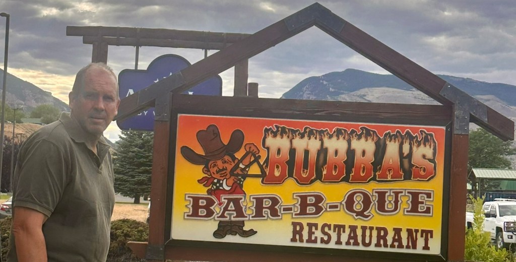 Up into Cody, we checked into our African themed motel. Superbly presented lions, warthog, kudu, springbok, and gemsbok greeted us in the foyer. Nothing compared with Big Nose George’s shoes but still a bit weird. Cody is named after the famous Buffalo Bill who had an interesting life, some of which may not have happened but regardless a bigger than life character. Next door into a bar and grill, packed because it was a Sunday and it was open, we gave our number to the girl on the desk and waited until we got the call that our table was ready. Inevitably this comes when one has decided to do something that takes 20 minutes to do, and the call says we only have 15 minutes to get there. What? It’s ready? I’ll stop writi…..