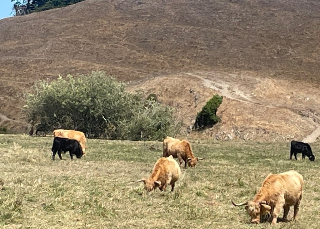 We didn’t find out until later that this road is considered by some to be one of the best in the USA. It isn’t well maintained, but if it was it would be crawling with sports bikes and Ferraris. Through tunnels in the forests going up over the range to the coast, there wasn’t 100m of straight road, it was relentless corners. Near the coast at this time of year, the fog and mist just add to the scene, it was amazing. So amazing and winding that Cindy couldn’t take her hand off the bars for long enough to take photos. As we went through Capetown, population apparently zero-ish, we got into pastural land with the risk of cows.