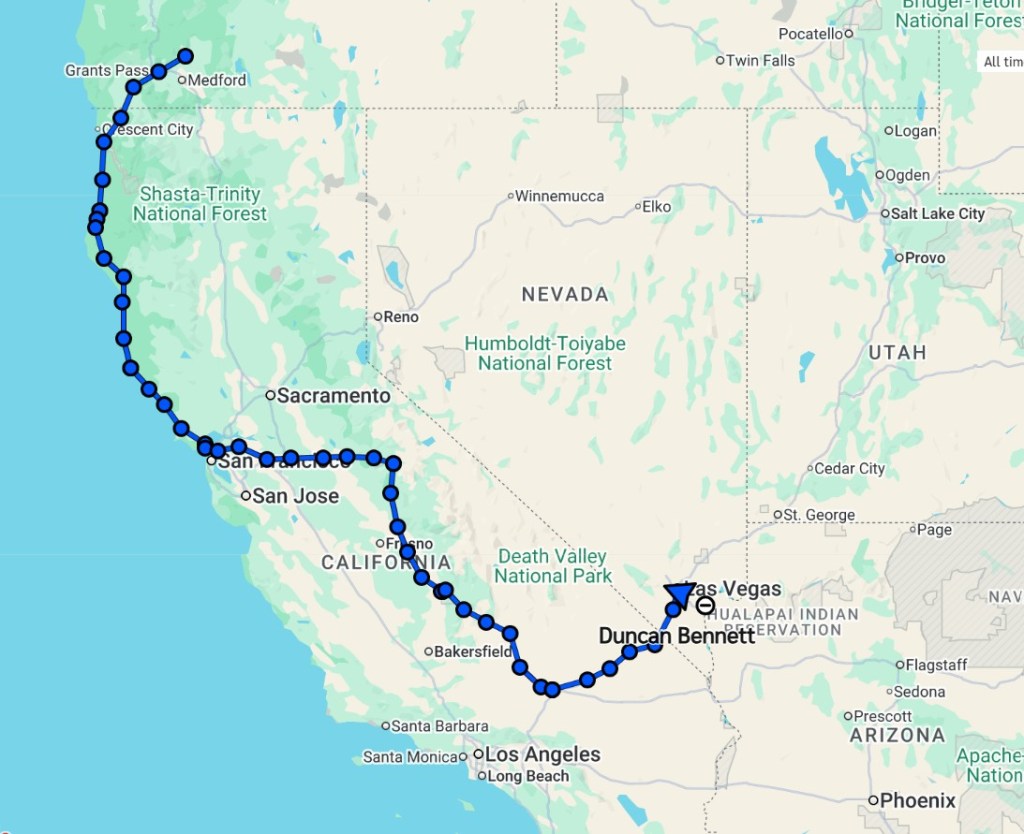 Tragically we’d missed Washington due to Cindy’s bike dramas in Oregon, so only had the lower 47 conquered so far this trip. But don’t worry – the trip wasn’t over just yet. Over the horizon was Las Vegas, our home for the next couple of nights and a place for Cindy’s now-horribly-stretched chain replacement. Should be able to find something to do there.