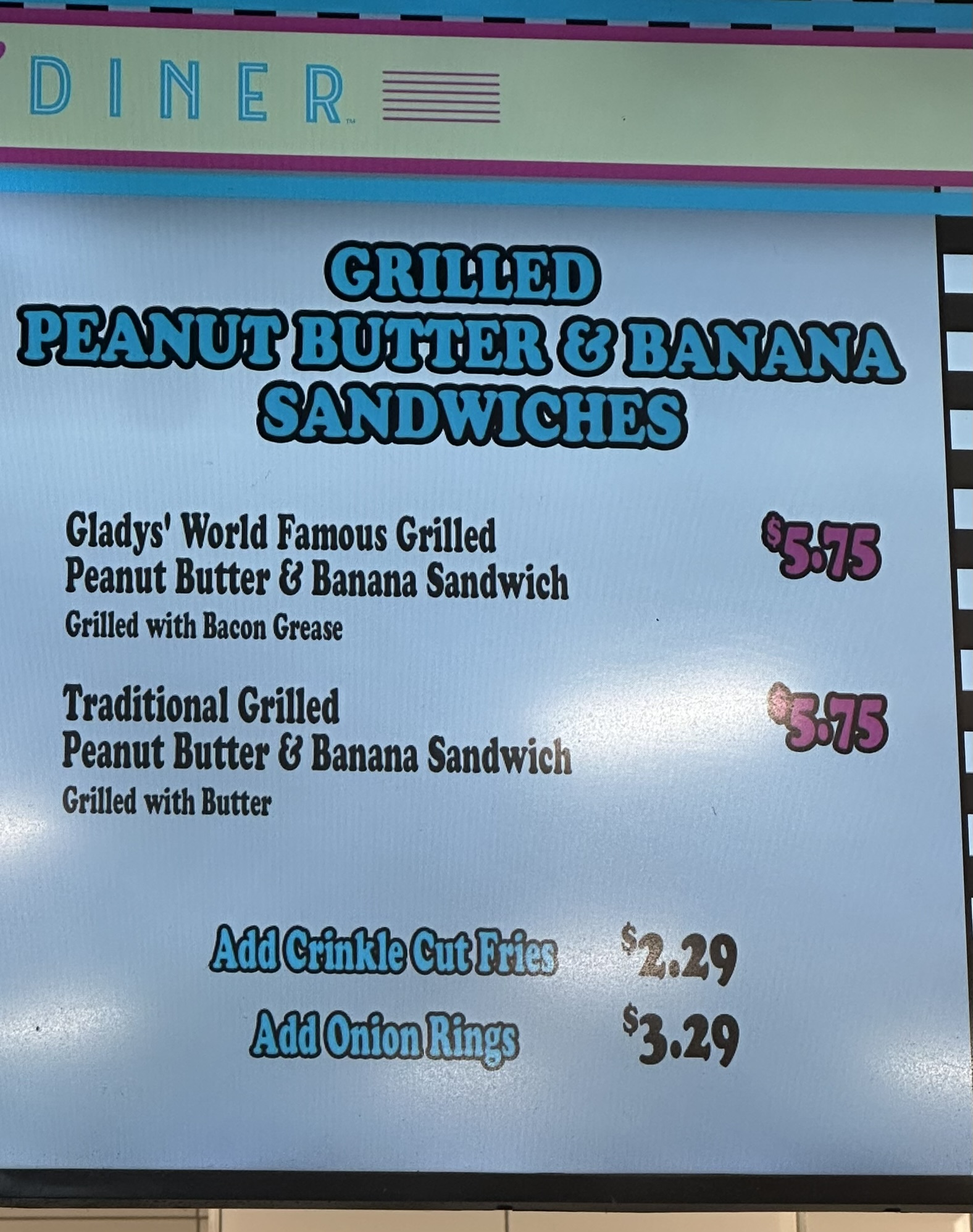 A visit to Graceland in Memphis Tennessee provided a once in a lifetime cultural dining opportunity – yes a fried peanut butter and banana sandwich (fried in bacon grease of course)! This was a speciality of Elvis’ mum Gladys, true Southern comfort food and amazingly enjoyable. Duncan was very hesitant and didn’t order one but tasted mine and proclaimed it “hunka, hunka burning love…” or maybe it was the bacon fat talking.